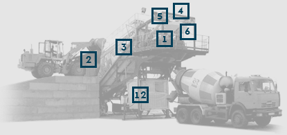 Обеспечивает подачу щебня и песка в смеситель. Двойная запасовка троса и система предотвращения падения скипа делают производство надежным и безопасным.